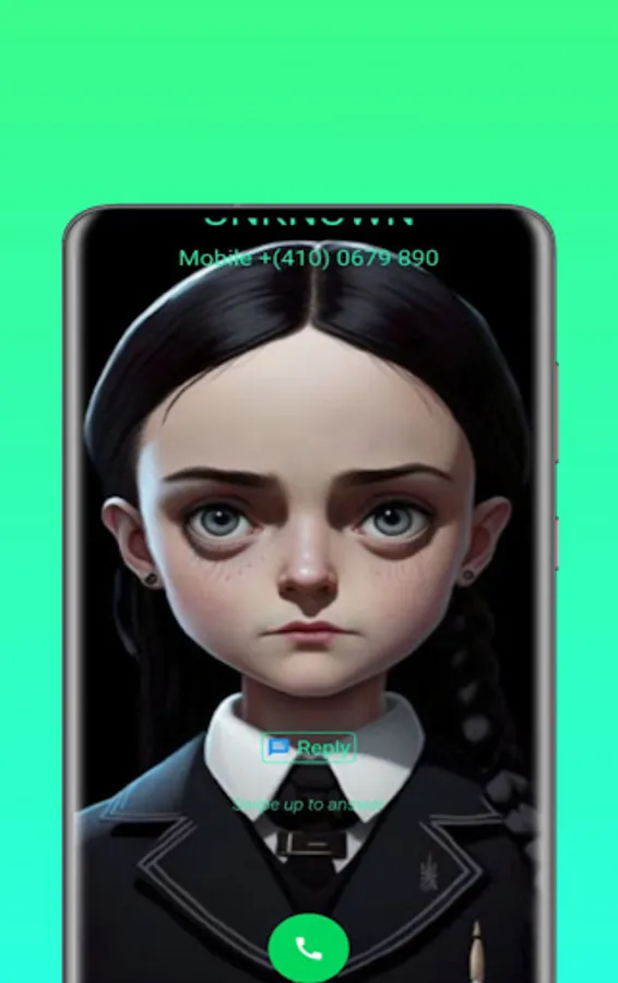 Prank your friends and family with a call from Wednesday Addams. Amuse your classmates with a fake call from the famous Addams family character. With this app, you'll become the king of the school in no time. Only you'll know that it's a fake call, so have fun tricking everyone. Pretend to receive a call from a celebrity and surprise everyone with the help of Wednesday Addams Prank Call.