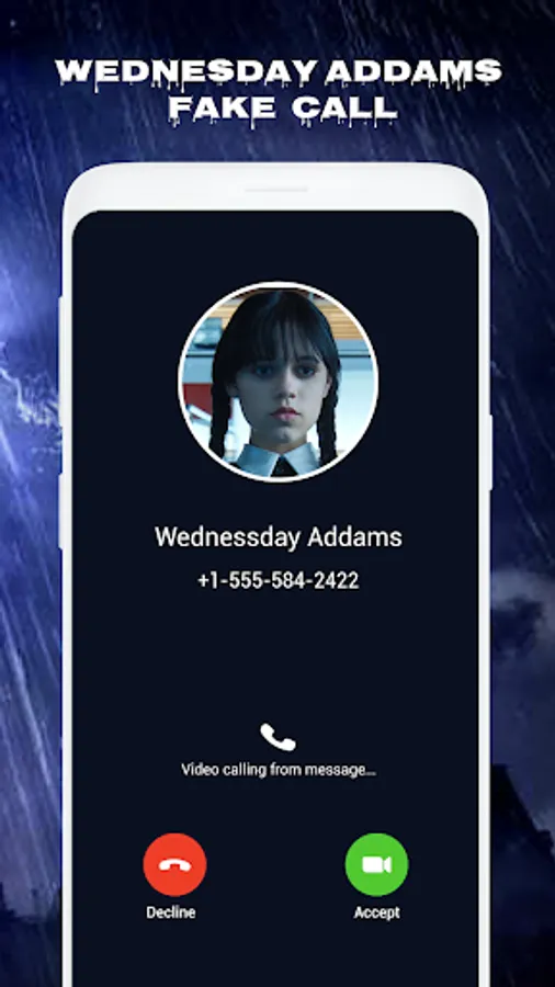 Simple fake call app of little girl name Wednesday Addams of Addams family. Wednesday fake video call and prank chat to fun with your friends. Download Wednesday Addams calling games and app right now to prank anyone with the fake call simulator to enjoy your boring time.