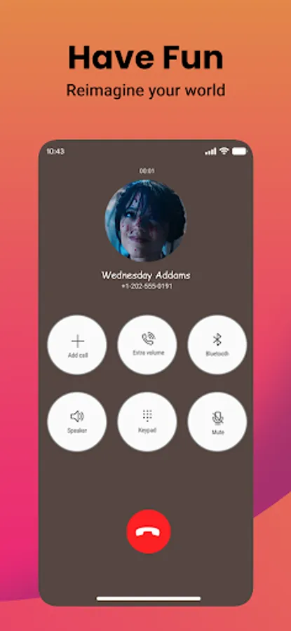 Jenna Ortega is the main actress of Wednesday Addams series and by using this fake call app you can set fake calling id to prank your friends. Custom timer to receive incoming fake call for Wednesday Addams. Jenna Ortega prank call and customized fake caller id with calling themes will make this prank call app more realistic like never before.