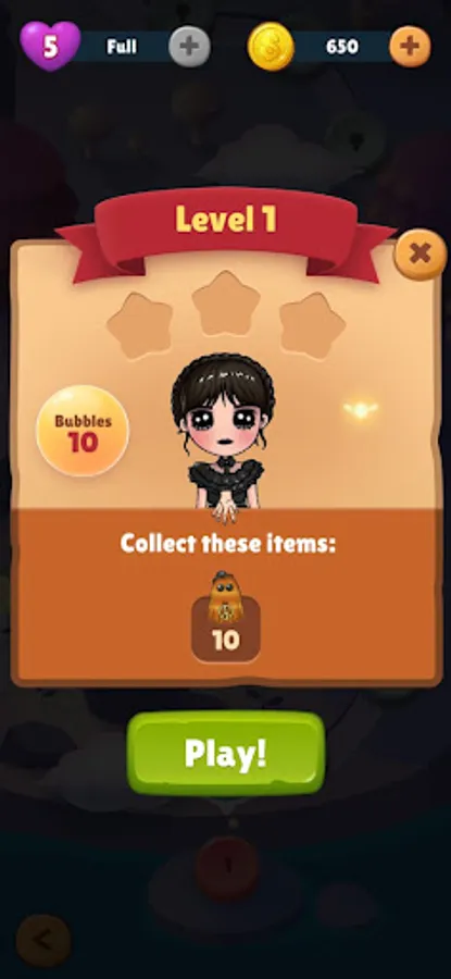 Help Wednesday with shooting those bubbles to drop the witch and rescue the impossibly adorable Thing Addams. With special guests and events popping up all the time, there’s always a fun new challenge to take on. Of course, accomplishments come with their fair share of rewards! It of a kind of bubble pop game!