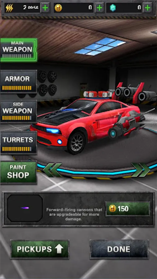 Four special vehicles with 15 levels of primary weapons, secondary weapons, armor and gun turrets.