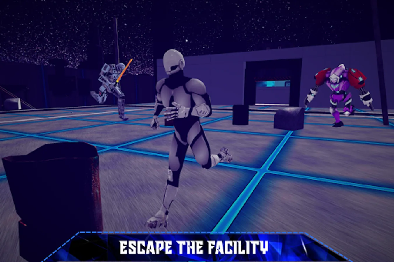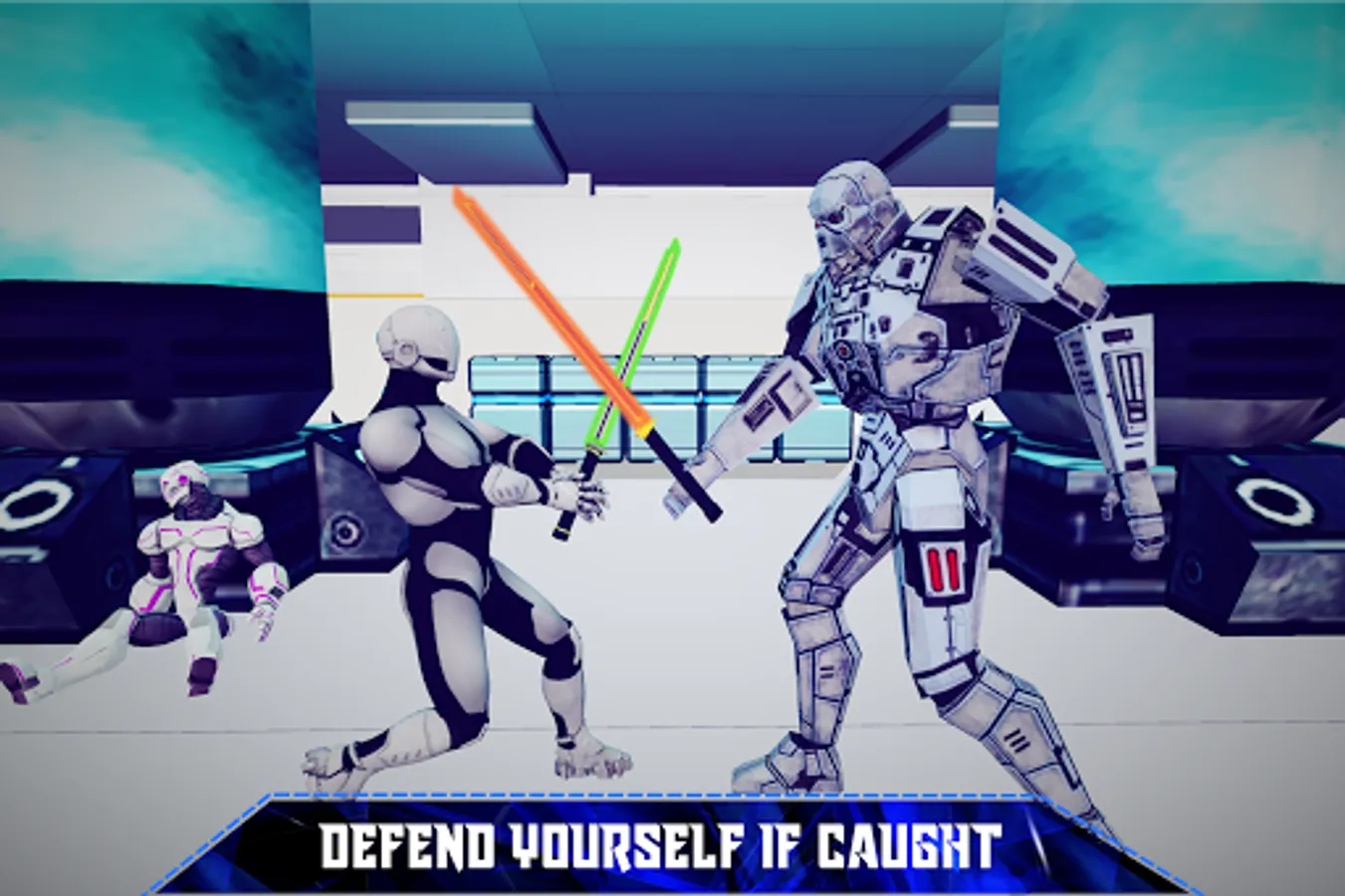 Engage the police robots into melee or get your scifi light sword, thunder sword, echo sword. Cyber punk environment is offered to you to break the security of the steel door lab. End the game of death by completing the missions of cyber security