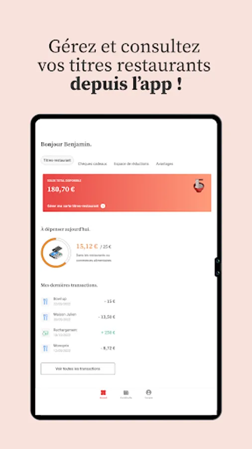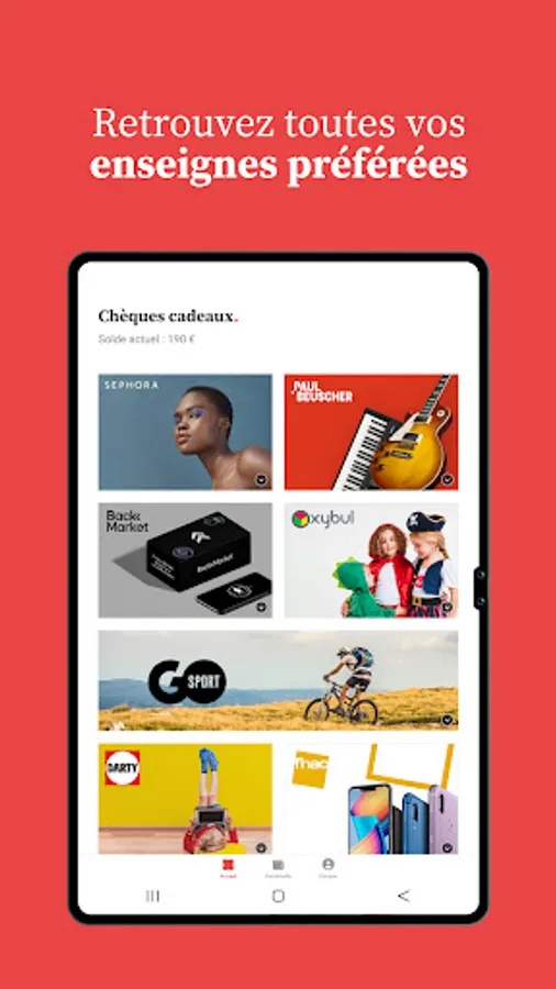 Thanks to your Glady application, your employee benefits follow you wherever you are! Depending on what your organization has set up, find your gift vouchers, your culture vouchers, your ticket office, your sustainable mobility package and many more. This is the Glady experience!