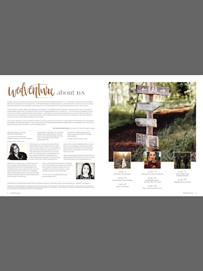 Published quarterly, each issue of Wedventure Magazine provides adventurous couples with the best resources in the PNW, along with all the cutting-edge trends to help inform you on every aspect of your upcoming wedding adventure.