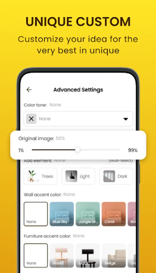 ► Snap a photo of your room, our advanced AI algorithms will analyze your space and generate a personalized design that suits your taste and style until you find the perfect look for your space.