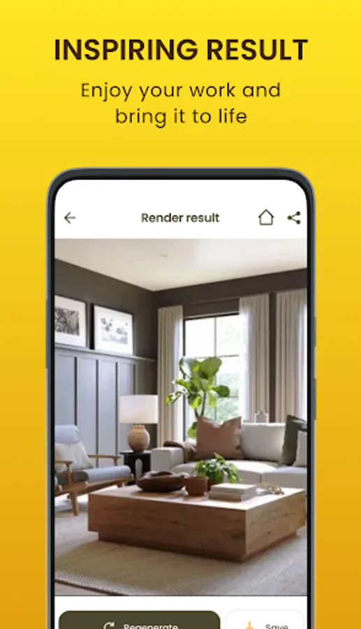 Save and Share: Share renders generated by the app, bring them to life, or save them for later.