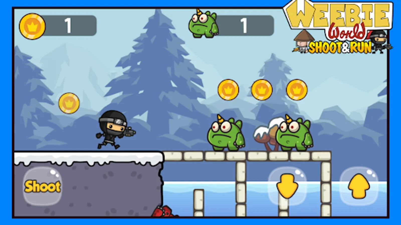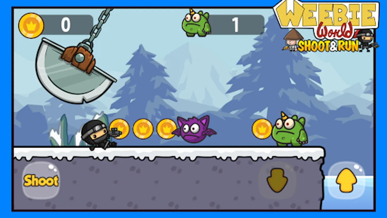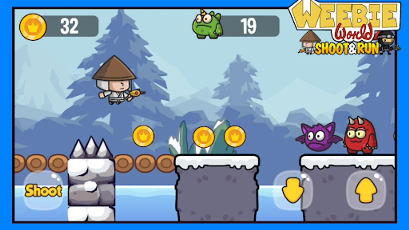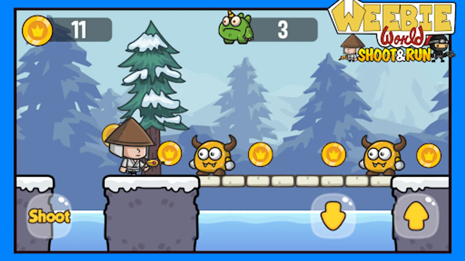 Weebie World - Shoot And Run In the Snowy World , Shoot Monsters with the Eggs and avoid the traps to survive, get the coins and save the snowy planet