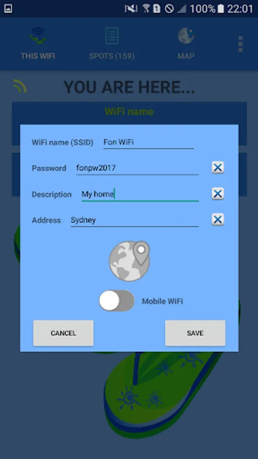 - Add and edit your WiFi profiles (password, address, details, GPS co-ordinates)