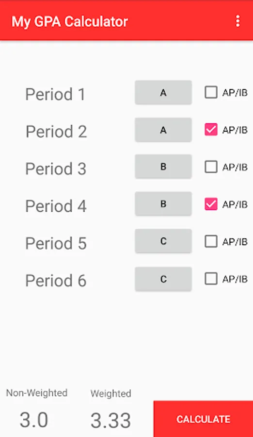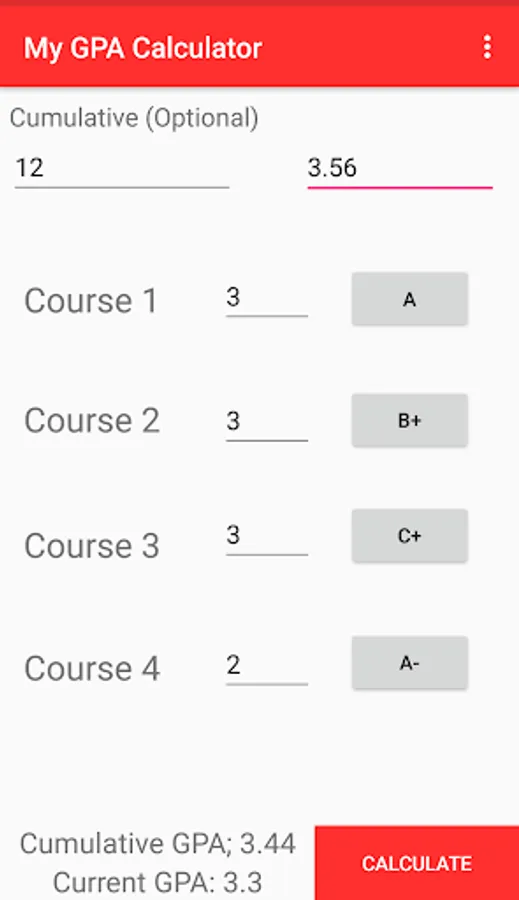 College section calculates GPA based on 3 to 6 courses the student takes.