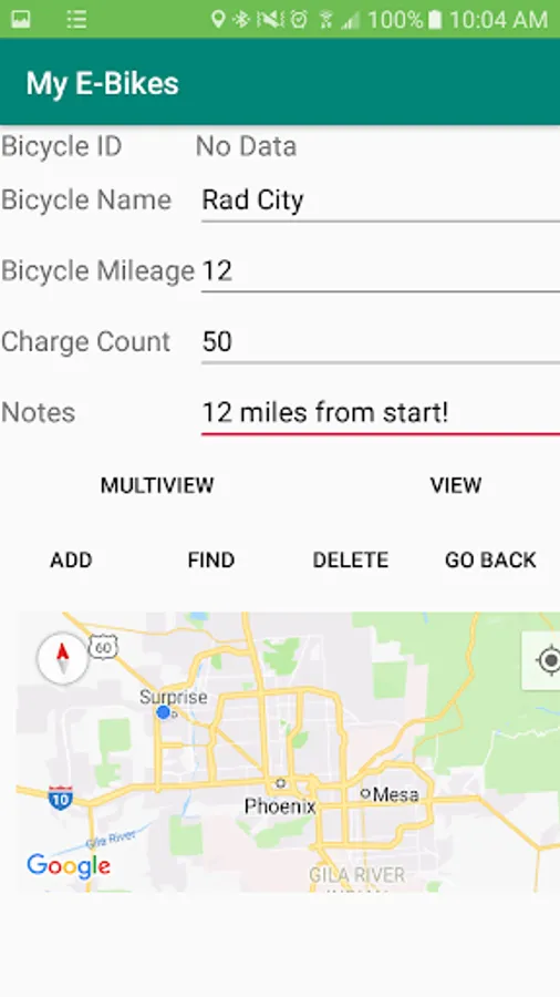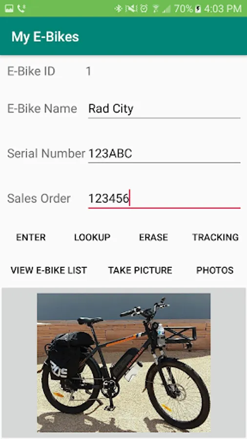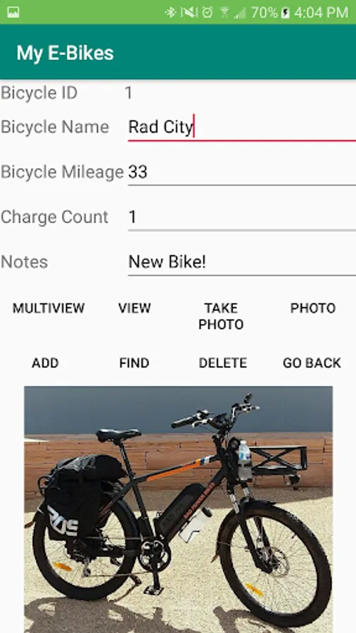 This E-Bike app will allow you to store your important E-Bike information for serial numbers, order numbers, mileage, battery charges and general notes. The app also gives you the ability to take photos with serial number information that can be screen shot into a photo folder created by this app called My E-Bike Photos on your phone. Data is stored locally on users phone. Gallery added to import previously taken photos into view for screenshot use. No WIFI needed to collect data. View a summary list on E-Bike information for mileage, charges and notes as well as serial numbers and order numbers. Google Map has been added to allow screenshot of map location with detailed text of route traveled. Use this feature to mark up landmarks with mileage text from ride start.