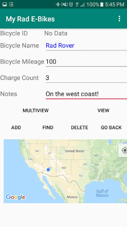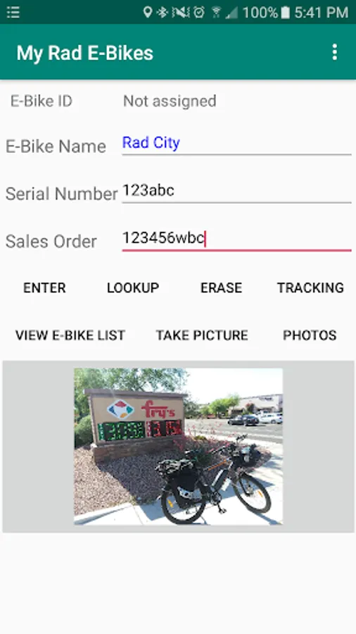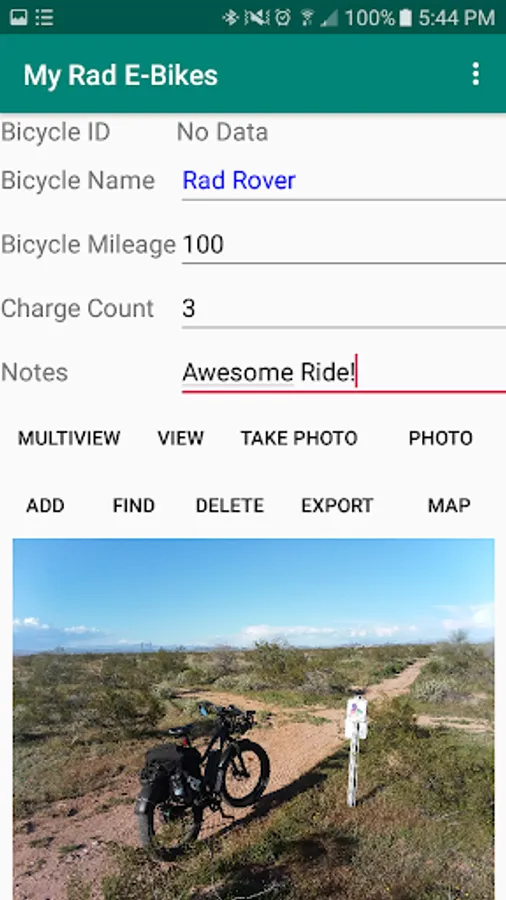 This E-Bike app will allow you to store your important E-Bike information for serial numbers, order numbers, mileage, battery charges and general notes. The app also gives you the ability to take photos with serial number information that can be screen shot into a photo folder created by this app called My E-Bike Photos on your phone. Data is stored locally on users phone. Gallery added to import previously taken photos into view for screenshot use. No WIFI needed to collect data. View a summary list on E-Bike information for mileage, charges and notes as well as serial numbers and order numbers. Google Map has been added to allow screenshot of map location with detailed text of route traveled. Use this feature to mark up landmarks with mileage text from ride start. Small ads at the bottom to cover this app for free!
