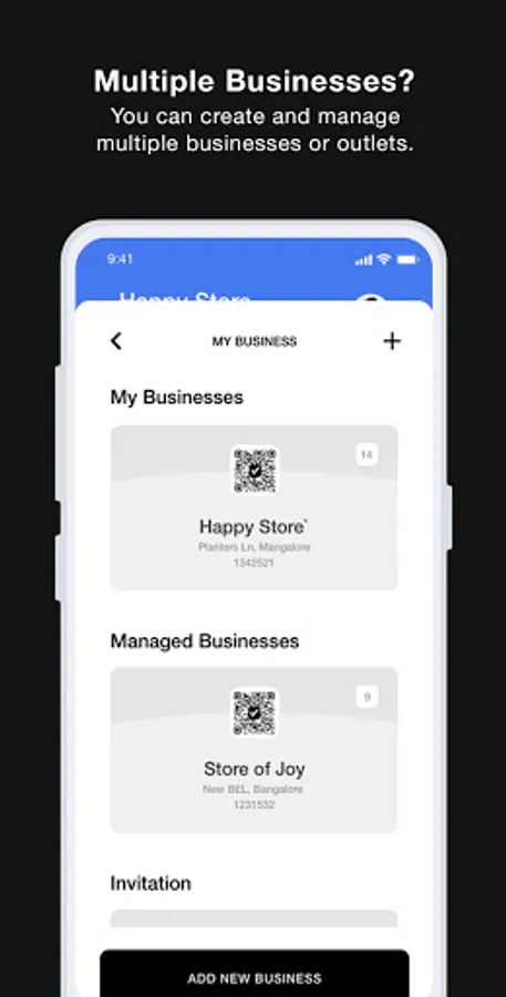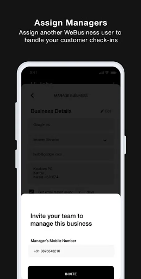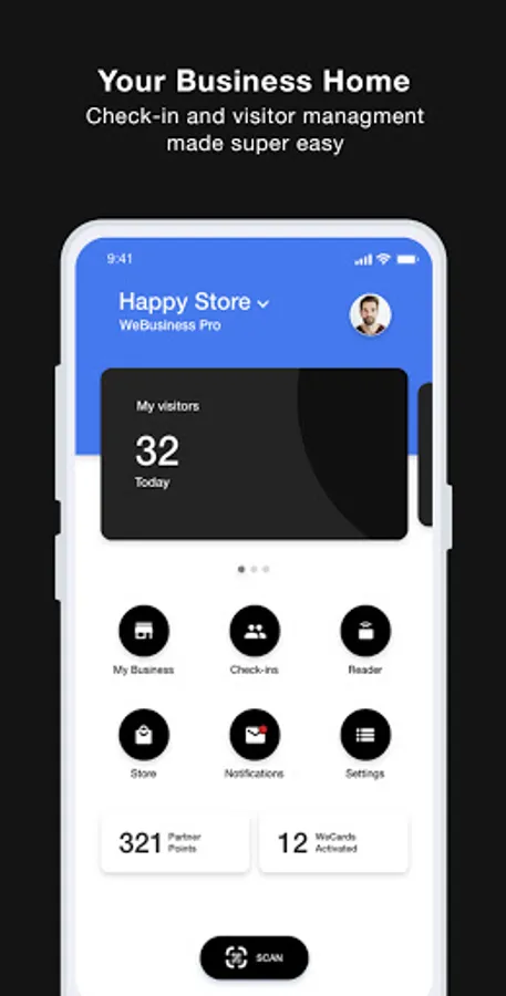 Get customer check-in logs, Assign business managers, Manage multiple businesses/outlets and Activate smart WeCards right inside the WeBusiness app.