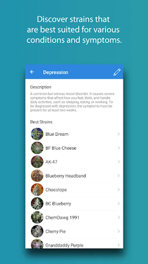 Weedi is a simple way to connect with your dispensaries and find all the cannabis strain information you need. Regardless if you are a new user or a seasoned cannabis expert, Weedi can help you document your cannabis experience and keep you updated on your favorite dispensaries. You can search through thousands of strains, follow dispensaries, and discover the latest products and deals in dispensaries near you. Save personalized notes and bookmark your favorite strains all in one place to easily reference it later. The app includes full strain descriptions, history, and reviews from cannabis experts and real users.