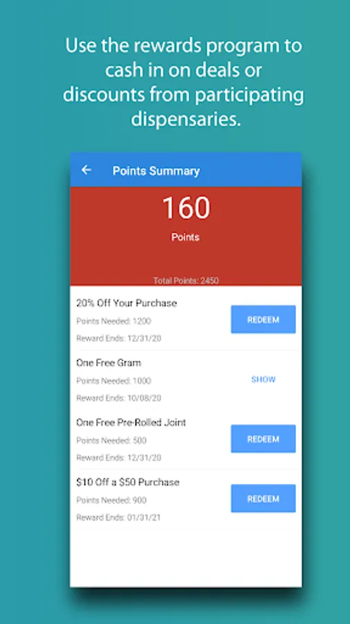 Use the rewards program to cash in on deals and discounts from participating dispensaries.