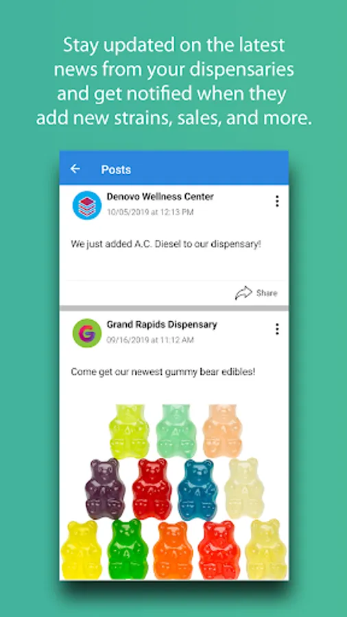 Get notifications from your favorite dispensaries and always be up-to-date on the latest posts.