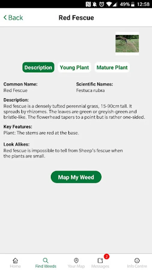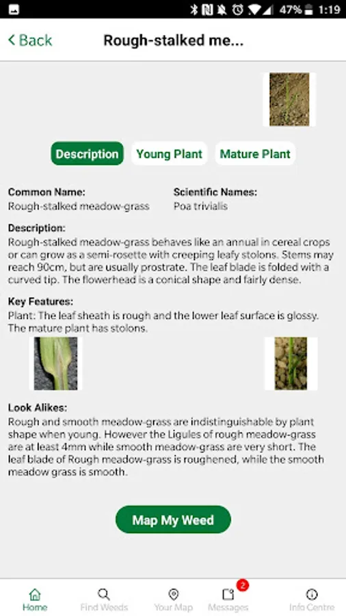 # Option to photograph the weed in your field and use to directly compare with images in the App library