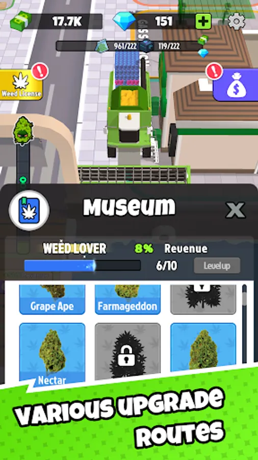 · Speed up transport and capacity to boost your weed empire