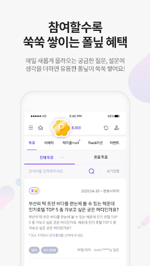 - From everyday questions to interesting topics, the more you participate, the faster you earn points. This rewards service earns you points.