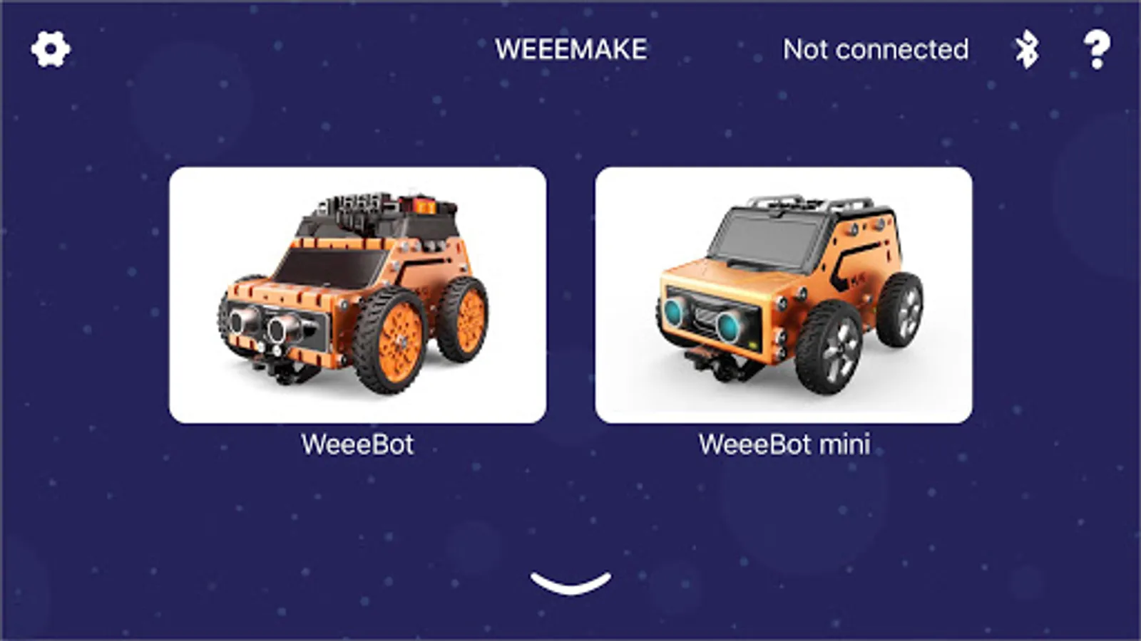 WeeeMake App is a programmable remote-control app for the WEEEMAKE educational robots. Users can control and program their robots by Bluetooth through Weeemake APP. This APP contains multiple play modes, including manual control, line-following control, obstacle avoidance control, music play control, voice control, and coding.