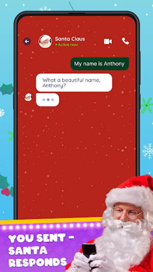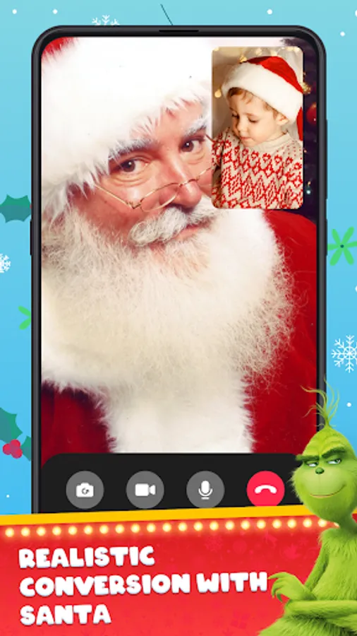 This fake phone call Santa app lets you make a prank video call Santa, fake chat and prank call Santa
