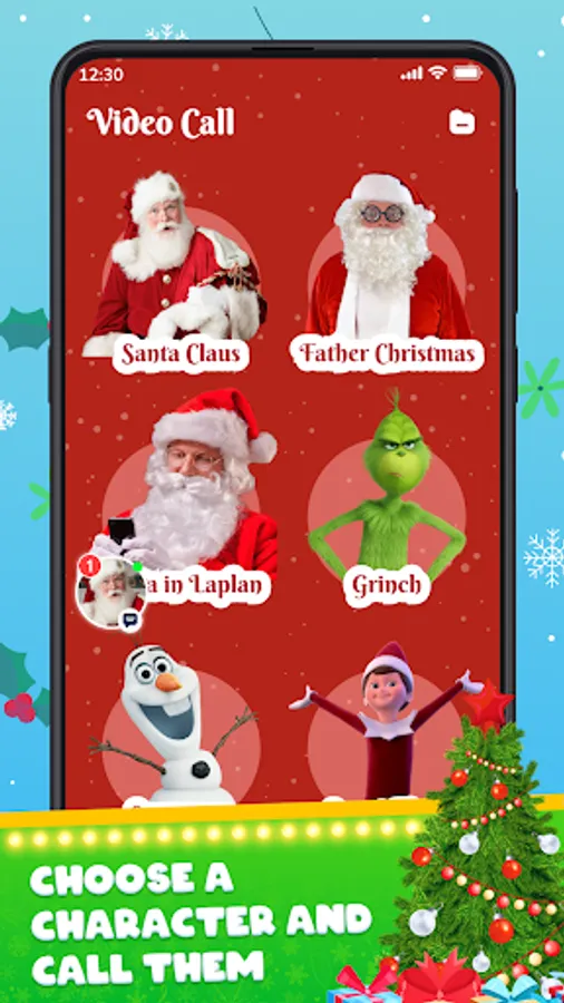Choose your favorite Santa (American or British) and connect with Santa right away or set up a time you want to simulate a fake video call app