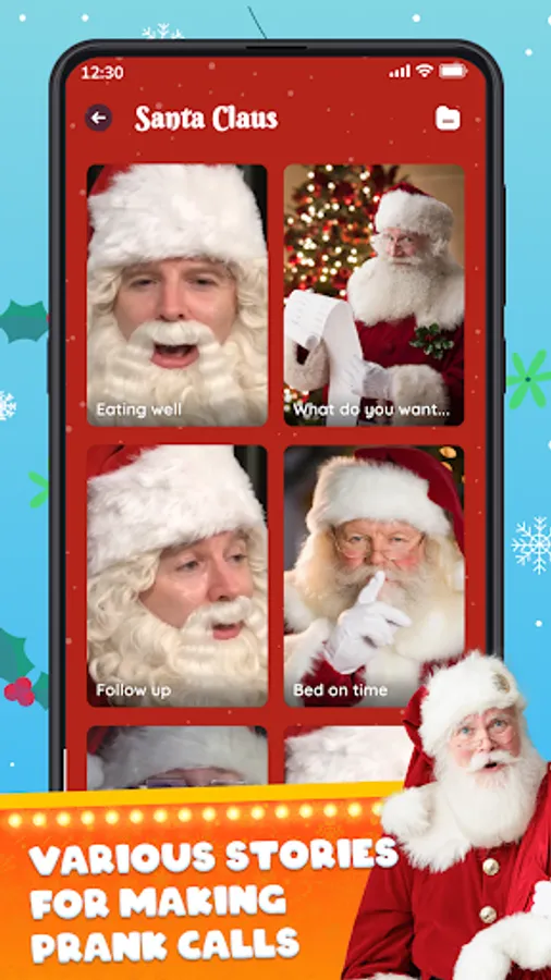 Choose your scenarios according to your needs for prank call Santa to fake messages and make a fun phone call