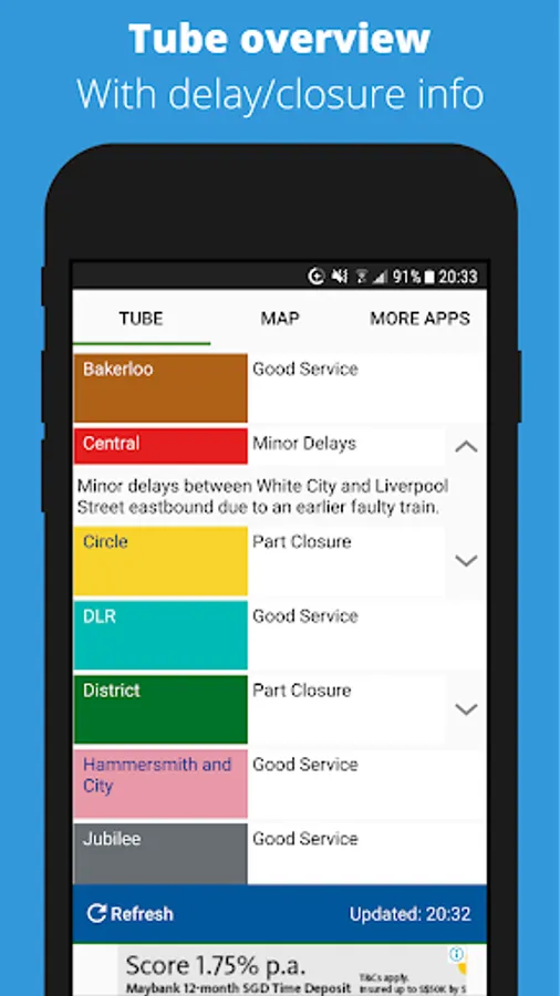 • Live London tube departure boards, line status