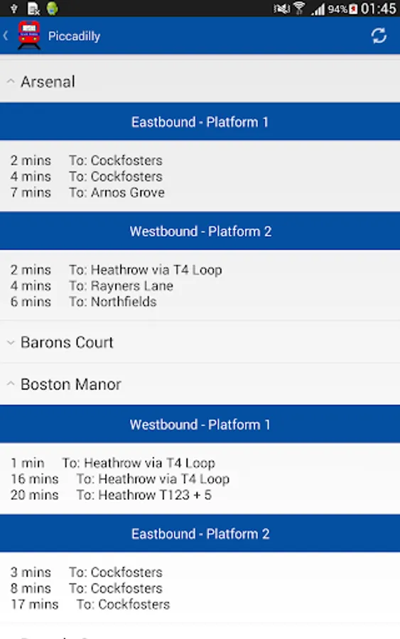 A free application providing live London transport data.