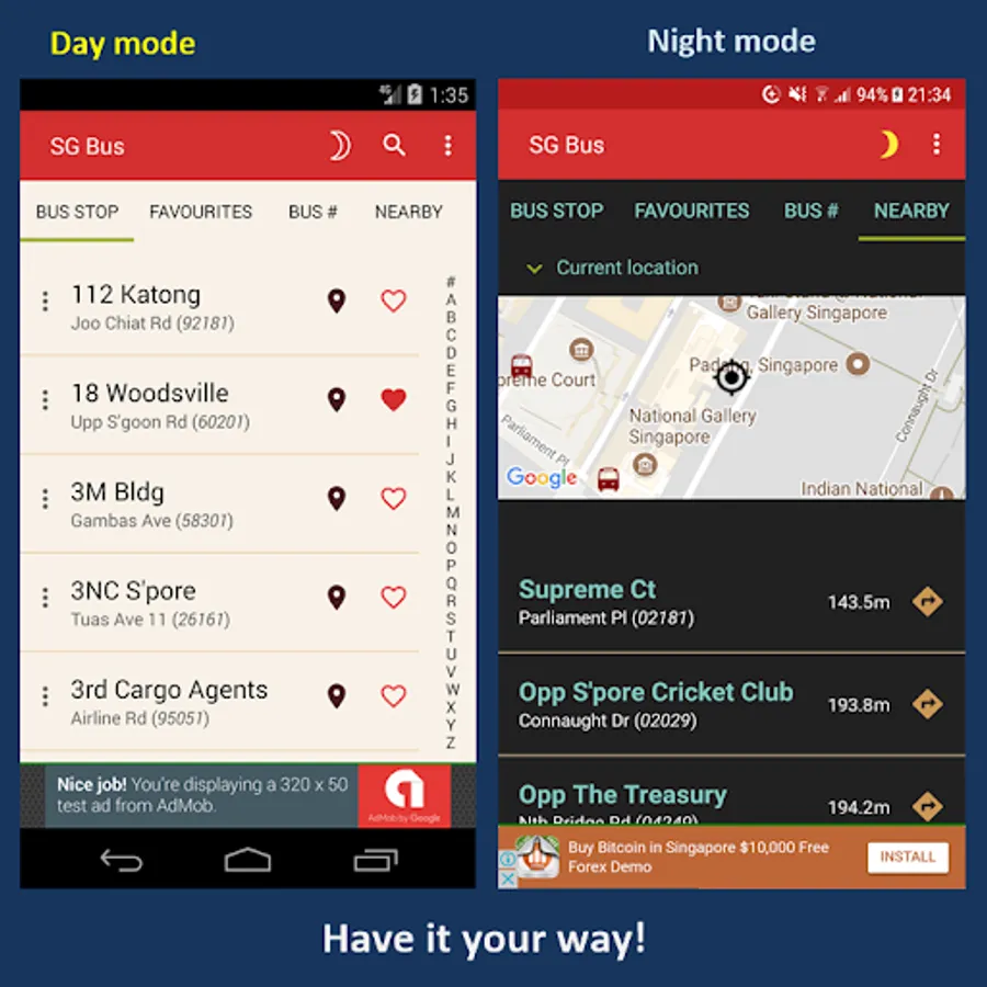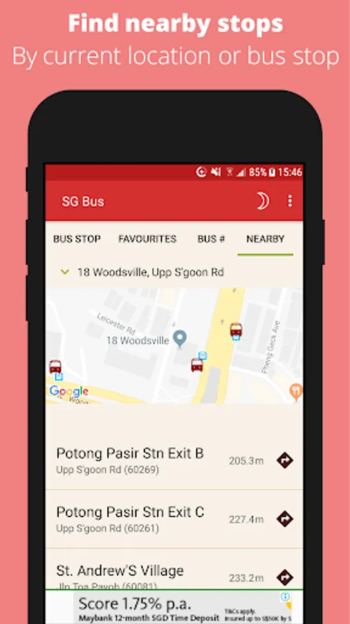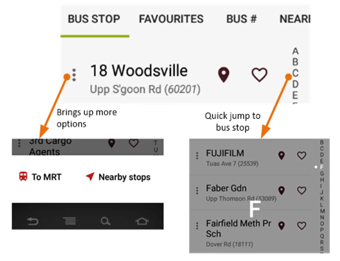 • Listing of all bus stops serviced by SBS, SMRT, Go Ahead, Tower buses