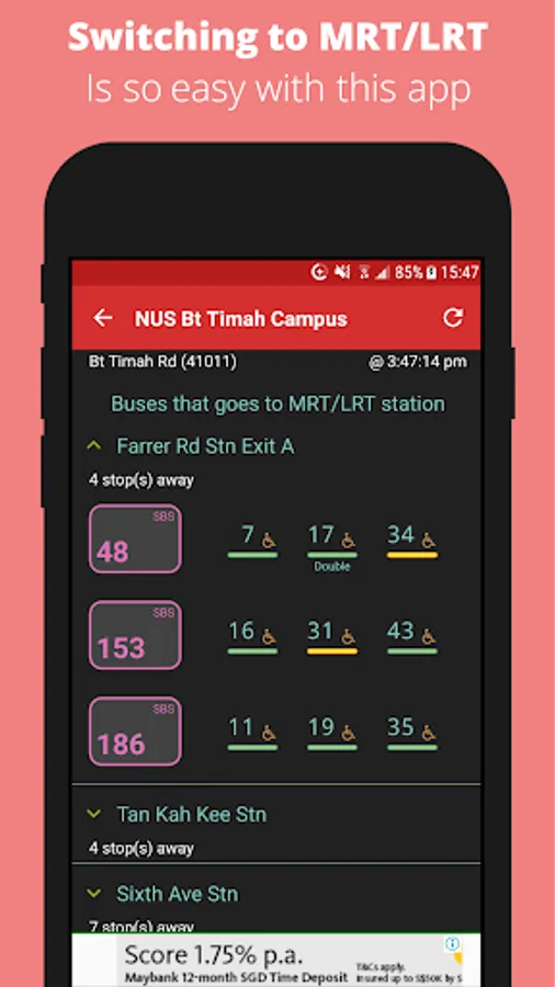 • Find out which MRT/LRT station can be reached directly from selected bus stop