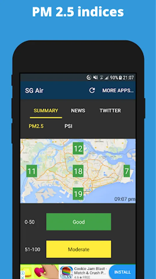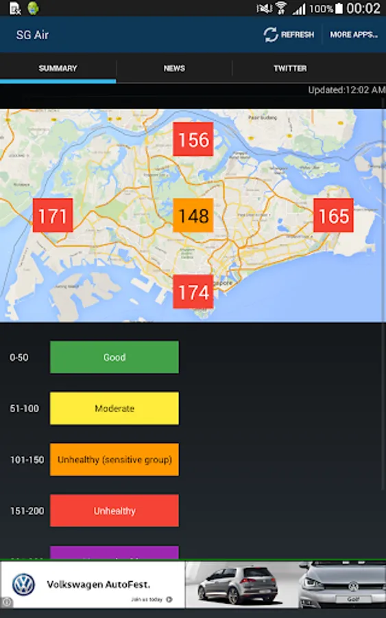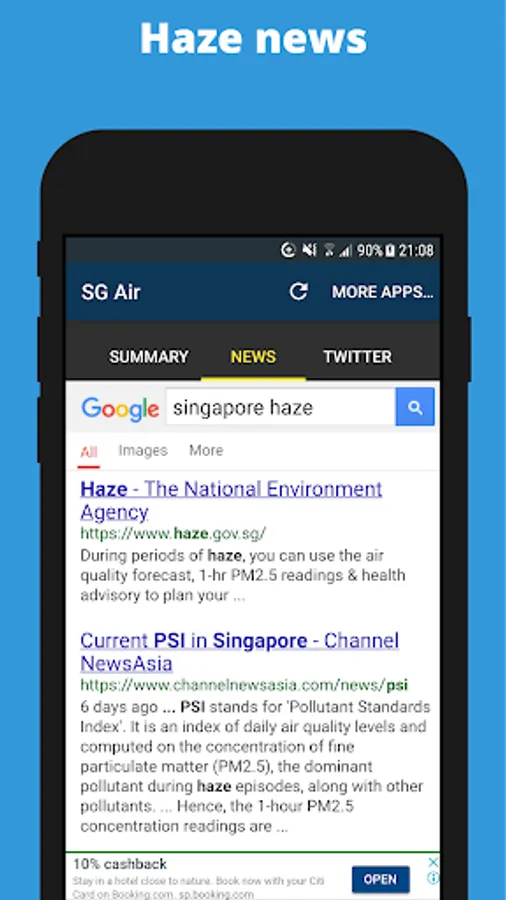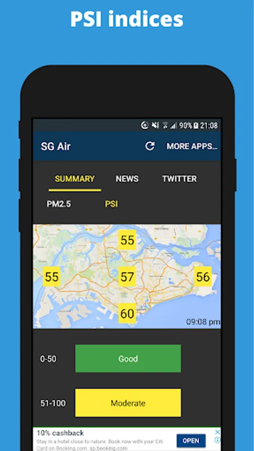 A simple app to get the latest update on the Singapore Air Quality aka PSI level.