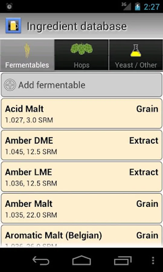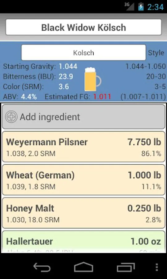 * Calculates OG, IBU, color, estimated ABV and FG