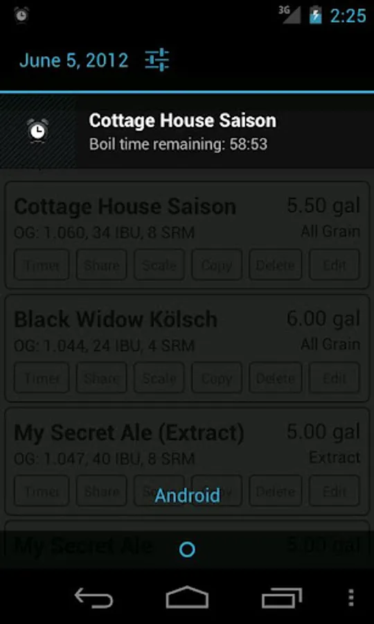 Create or enter and customize existing beer recipes and use the built-in timer for hop additions when brewing. Keep notes of what you brewed and when.
