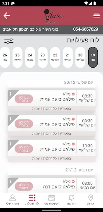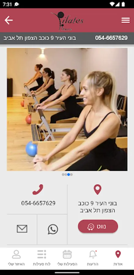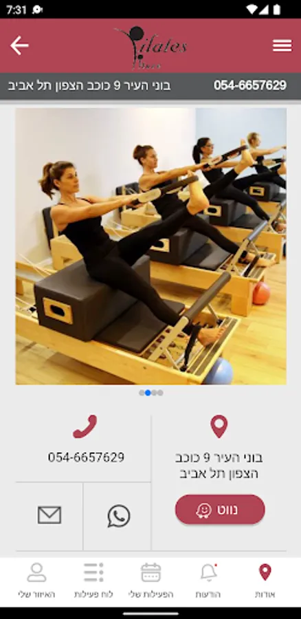 אפליקציה המאפשרת לך להירשם ולבטל שיעורים און-ליין, לקבל התראה כאשר מתפנה מקום בשיעור שנרשמת אליו לרשימת ההמתנה. האפליקציה קלה לשימוש, רק צריך להירשם בפעם הראשונה עם שם המשתמש והסיסמה!