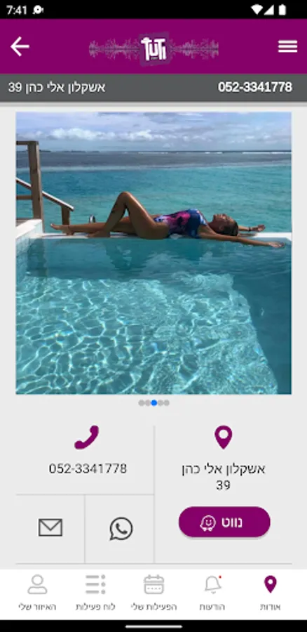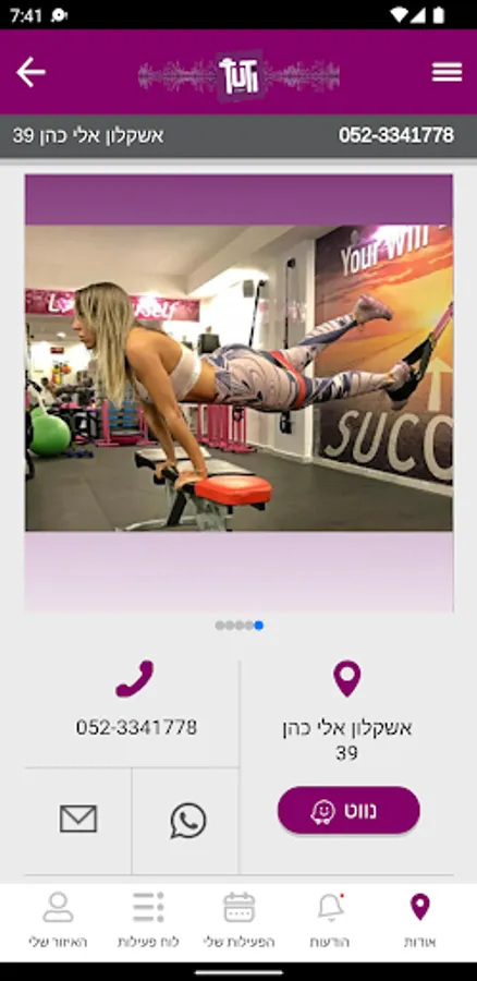 Bad Amsalem's studio / reut amsalem located in Ashkelon / Ashqelon. The studio is the studio fitness / exercise, diet / nutrition, toning, slimming / lose weight and exercise / training.