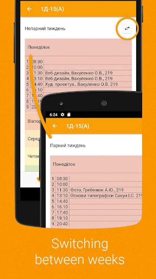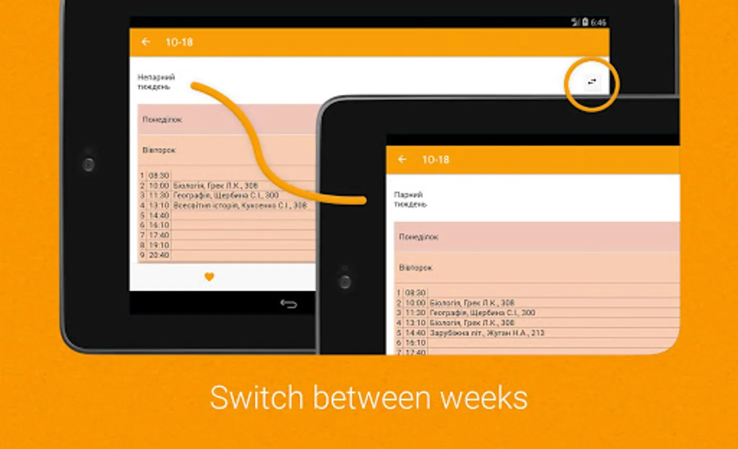Weekler — an application for educational institutions with support for replacements, "hot" updates and group searches.