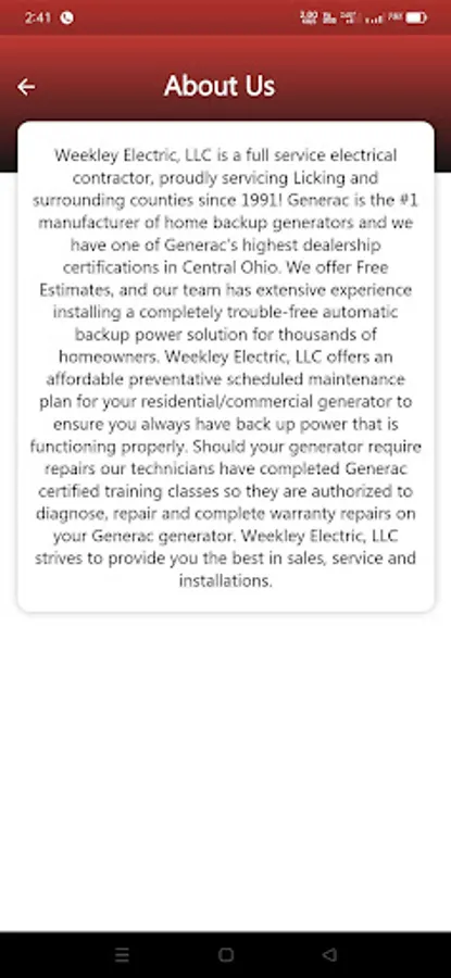 Weekley Electric, LLC is a full service electrical contractor, proudly servicing Licking and surrounding counties since 1991! Generac is the #1 manufacturer of home backup generators, and we have one of Generac’s highest dealership certifications in Central Ohio. We offer Free Estimates, and our team has extensive experience installing a completely trouble-free automatic backup power solution for thousands of homeowners. Weekley Electric, LLC offers an affordable preventative scheduled maintenance plan for your residential/commercial generator to ensure you always have back up power that is functioning properly. Should your generator require repairs our technicians have completed Generac certified training classes, so they are authorized to diagnose, repair and complete warranty repairs on your Generac generator.