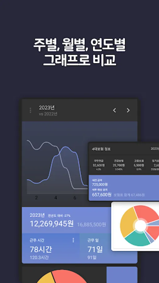 You can check the four major insurances and weekly, monthly, and annual work information in charts on the dashboard at a glance.