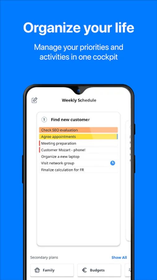 Weekydo helps you to create your weekly schedule like a "cockpit". This gives you an overview of your most important priorities and tasks. With weekydo you will achieve better results on the way to becoming a high performer.