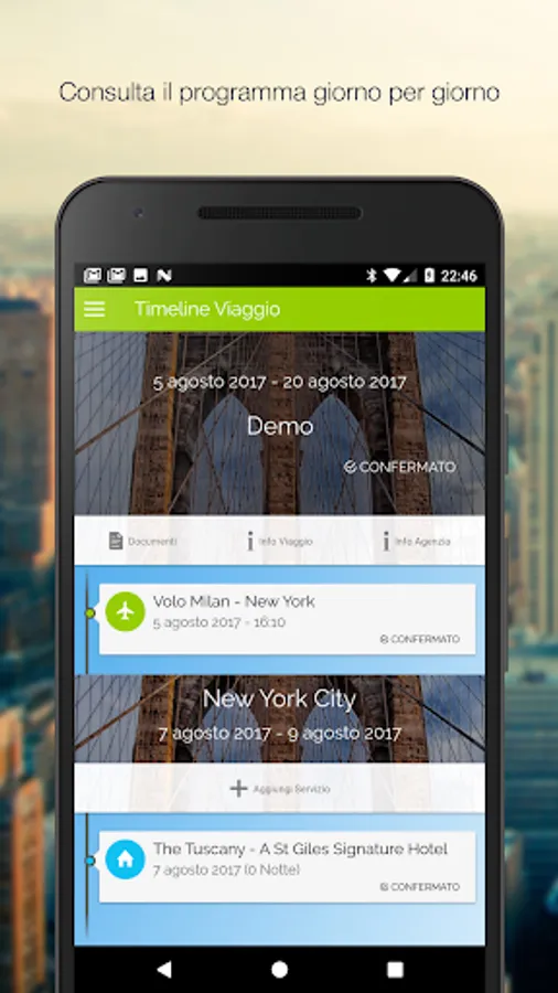 - Documents & Guides: Voucher, tickets, guides, travel program ... all organized day by day