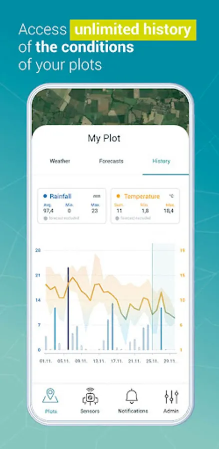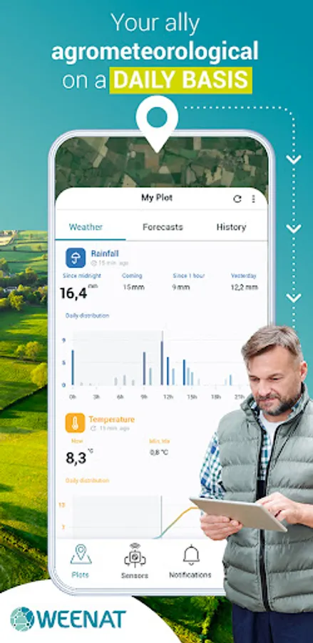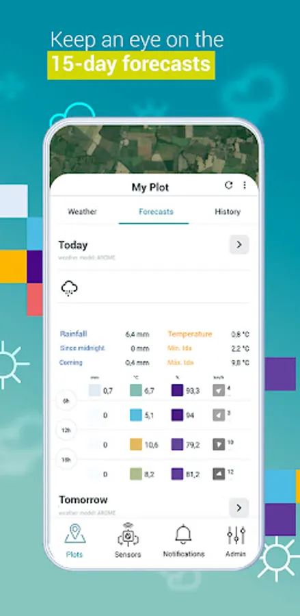 • Access 15-day weather forecasts, updated 6 times a day and ultra-localized at the GPS point of your plot.