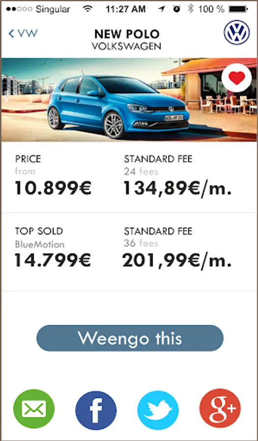 With Weengo all your employees will always have in their App the latest version of your products and services catalog ready to “Advise” their Friends and/or acquaintances in the possibility of acquiring any of them. Once they show the interest for any, Weengo will send their data to your official company commercial staff in order to achieve that sale.