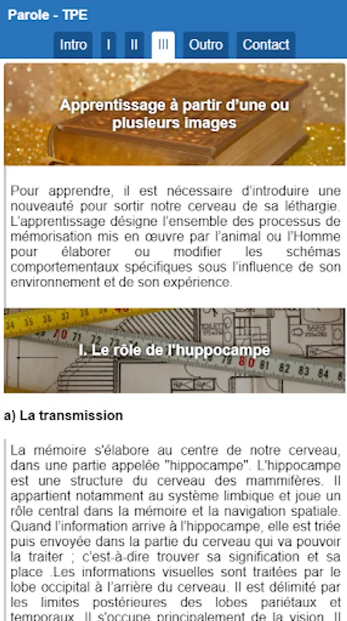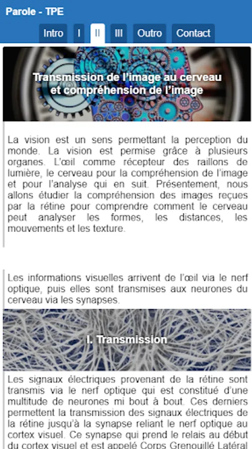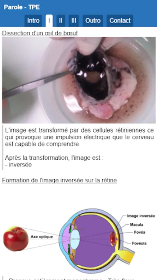In this application you will learn how the brain is able to learn from the vision. You will discover how the eye, then you will discover how the image processing by the brain as well as the use of these images as part of an apprenticeship.