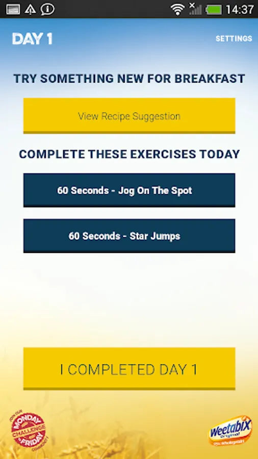 By following the Weetabix Monday to Friday Challenge you will complete 2 exercises each day, which can be done at home without any equipment, and enjoy 2 rest days at the weekends.