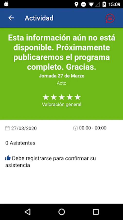 With this App you will be able to know all the events that will be developed during the days that the Assembly lasts, you can create your own personalized agenda with the events that you prefer or that you are going to attend. Receive real-time notifications during the celebration to not miss anything that may interest you, access to download related documents, use your chat to communicate with the rest of the attendees ...