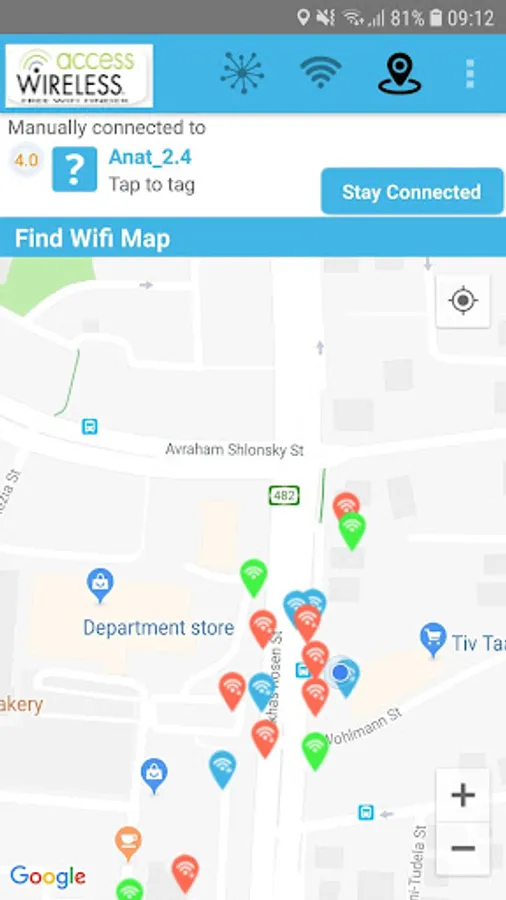 Access Wireless Free Wifi Finder automatically connects to free wifi hotspots in your town or wherever you may be.