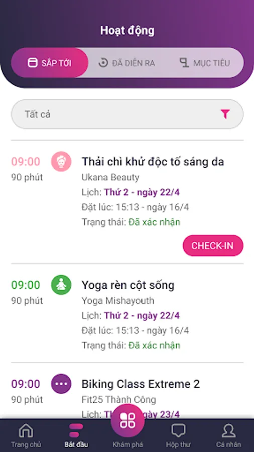 - Including various different catergories: Gym, Zumba, Yoga, Boxing, Dance, Swimming, Martial Art, Strength Training, Mountain Climbing, etc.
