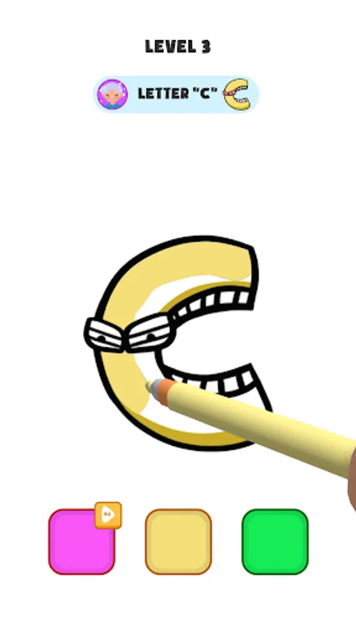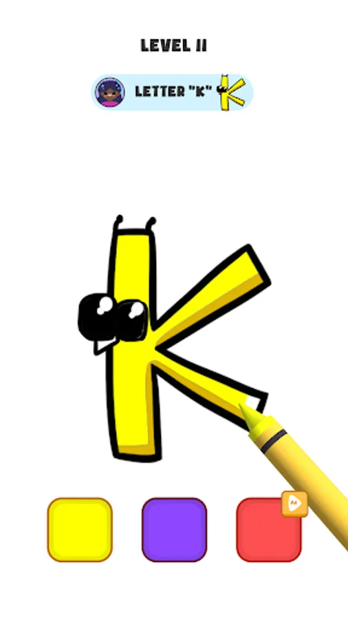 The game with countless images and glitter colors, combined with the alphabet will give you your own unique creations. You just need to touch and hold the pencil to complete the drawing and finish coloring the picture with the colors you want.