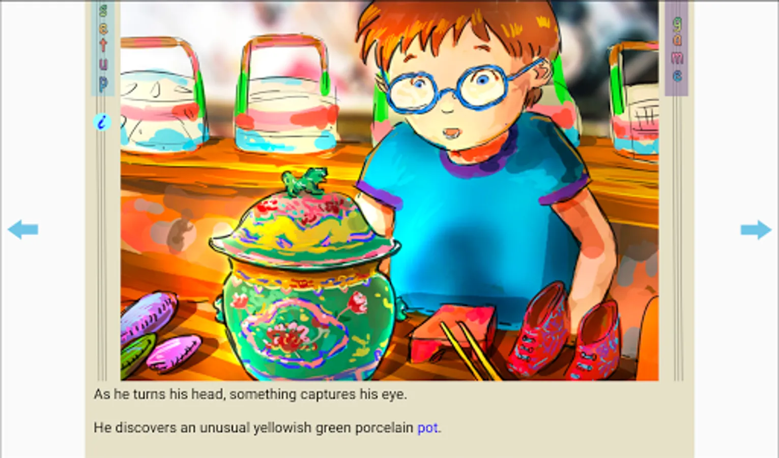 Johnny loves to explore. On a little street in Singapore, he finds an unusual magic Kam Cheng (spice pot) in an old curio shop. He discovers that when he does a special dance, he goes on a magical journey into the wonderful Peranakan place.