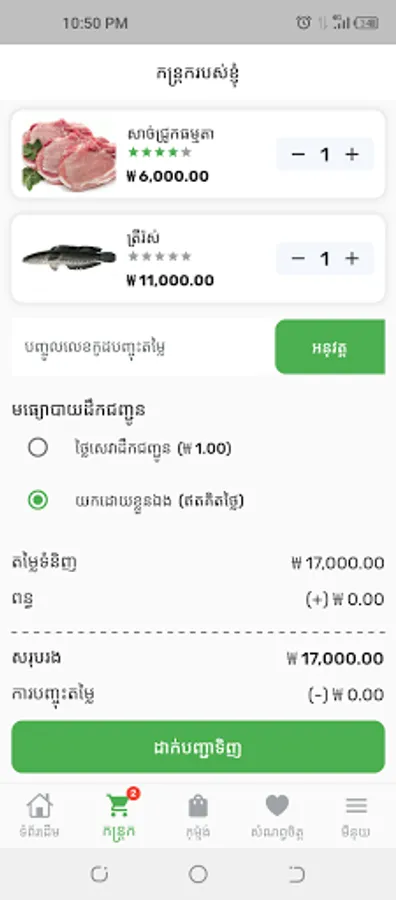 ● Cash on delivery (USD dollar, Korea Won, Khmer riel)